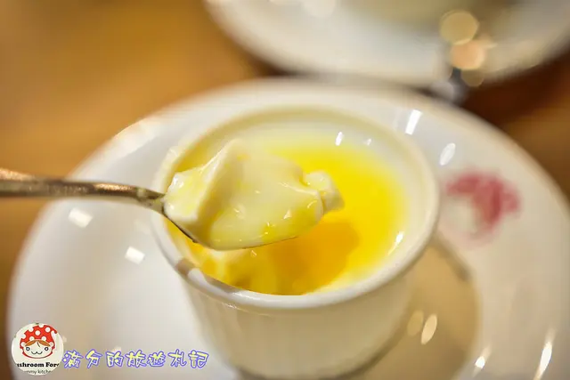 搭配芒果醬的奶酪,看起來有點像布丁