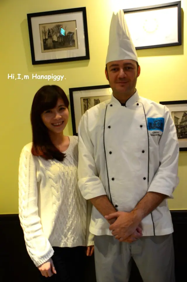 淡菜(Moules)是法國人很喜歡的食材,焗烤過的淡菜仍保有海鮮的鮮甜,搭配奶油、香料的提味,絲毫沒有可怕的腥味。淡菜上頭,主廚還費工的灑上麵包粉,增加整道料理的口感。這淡菜的佐醬十分特殊,那綠色的醬汁並不是常見的羅勒,而是野蒜泥,野蒜具有開胃、促進消化之效,拿來當作前菜是再適合不過的了!