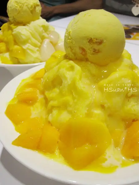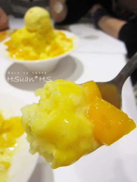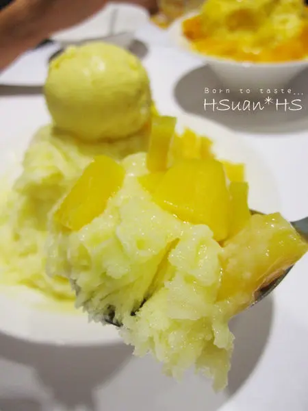 雪花冰旁擺了新鮮土芒果,鮮甜的味道和水果的香氣是騙不了人的,尤其是芒果這種很容易變軟爛的水果。