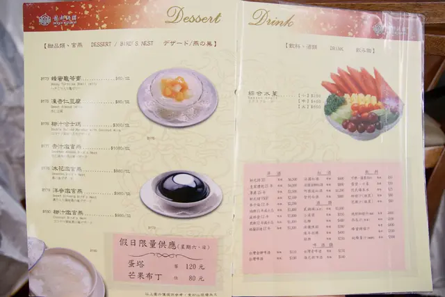 用餐一定必需要的茶資:外場大廳nt$40/人、包廂則是nt$300/桌,有多款茶種可選擇