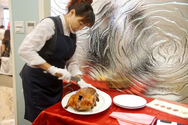 訂位時就要先預訂的廣式片皮鴨 nt$1680,上桌之後會由服務人員進行片鴨肉的服務