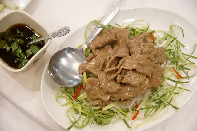 經由服務人員推薦適合給小孩吃的銀牙灼嫩牛肉 nt$380,牛肉確實嫩到一個沒話說