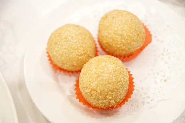 芝麻微甜不膩口、外皮則是Q軟但不會爛爛的流沙芝麻球 nt$100/3顆