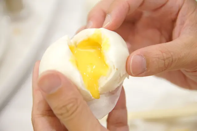有著白白胖胖身形的香滑流沙包 nt$120/3顆,是港式甜點裡我們最愛的No.1