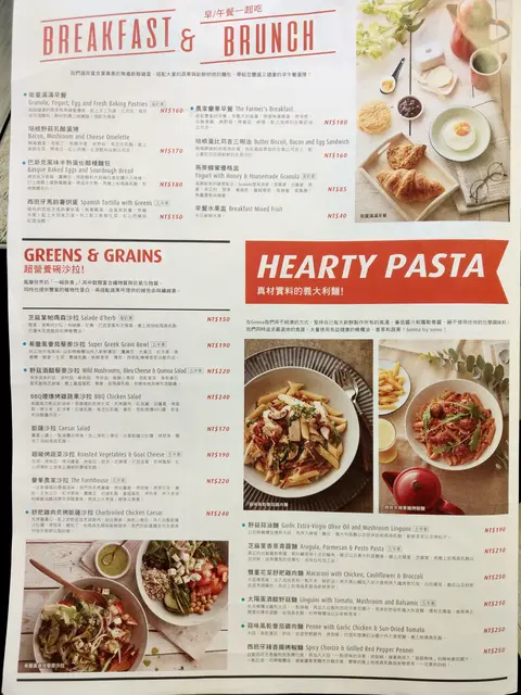 餐點型態從「早餐」到「早午餐」、到正式的「午/晚餐」,甚至「甜點」都有提供