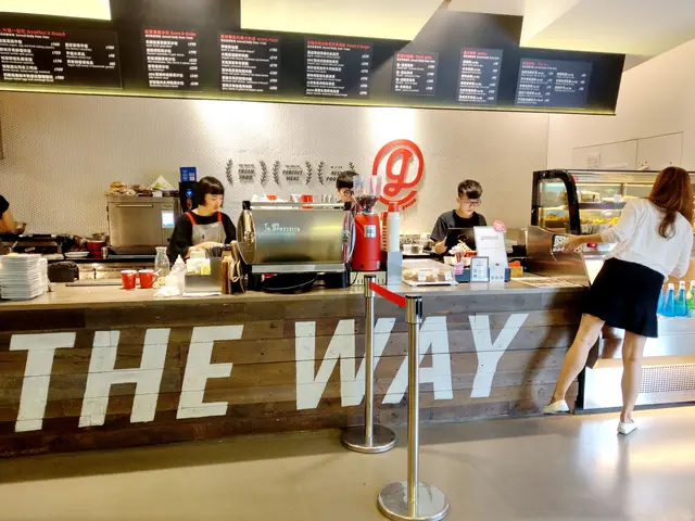 ①等候服務人員帶位 → ②自行至吧台點餐+結帳 → ③餐點由服務人員送到座位