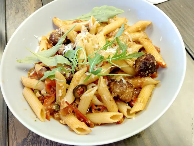 在我最愛的斜管麵裡加入了洋蔥、烤甜椒、大蒜、西班牙香腸以及"白酒"
