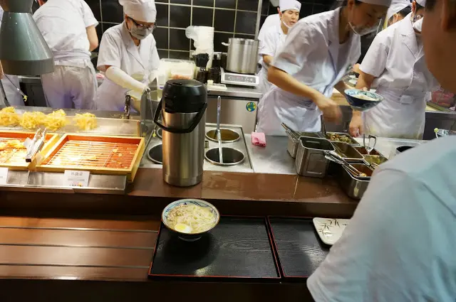 ▲在結帳處旁,另外有調味區,天婦羅醬、蔥花跟天婦羅花、辣椒等皆在這邊處理