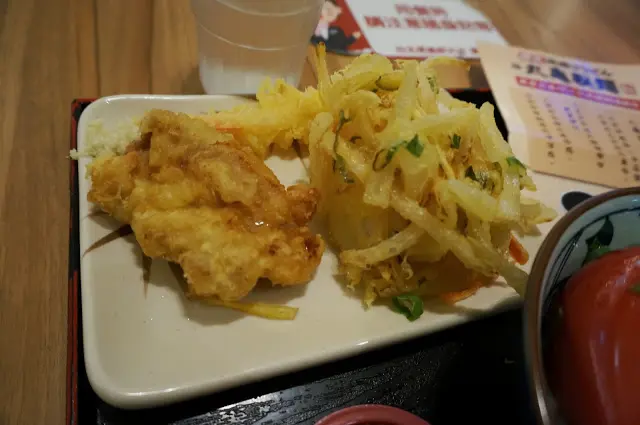 ▲分享今天夾的炸物有 炸蔬菜、炸雞、炸蝦 ,麵皮吃起來還蠻脆脆的,不會太過於油膩,炸蔬菜就很清清淡淡配上醬料有點給他養生啦,炸雞就不錯不過好貴一塊XD