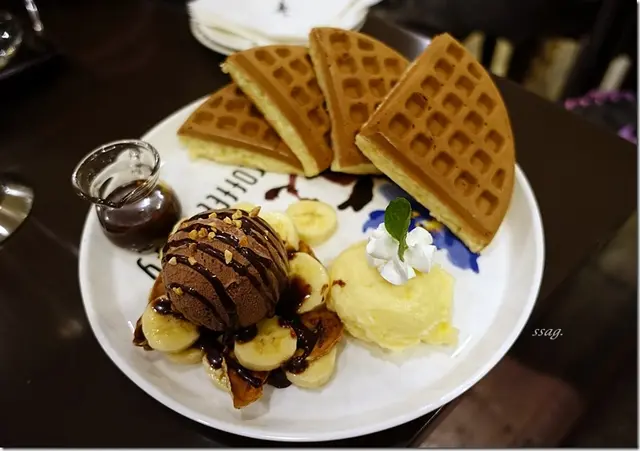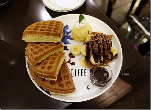 香蕉巧克力冰淇淋鬆餅、桂圓紅棗茶、綜合咖啡。