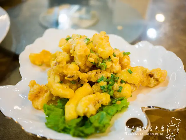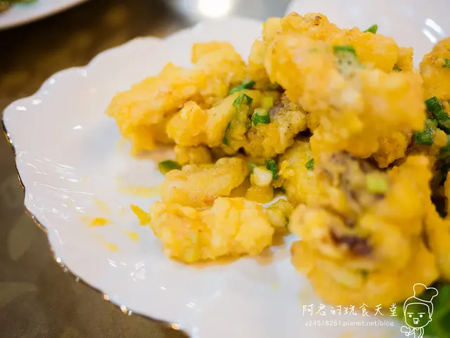 ▼金莎軟絲,酥脆的炸軟絲,外層均勻地裹上了鹹蛋黃炒成金沙,讚。