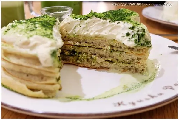 鬆餅之間的夾層也有撒上抹茶粉