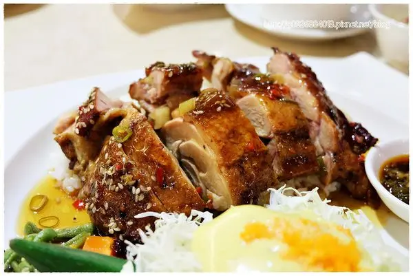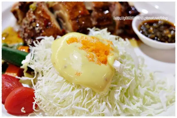 雞腿肉比較重口味,搭配清爽的高麗菜絲一起食用,剛好解膩