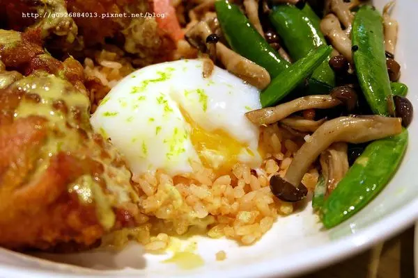 中間那顆是63度半熟蛋,上頭還撒了一些檸檬皮