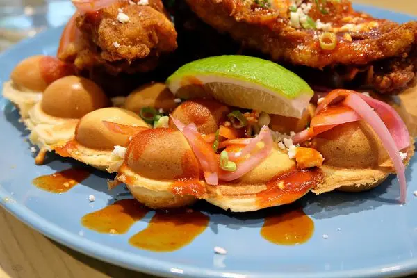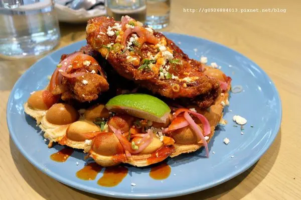很像外面賣的炸雞鬆餅,只是鬆餅換成了雞蛋仔這樣