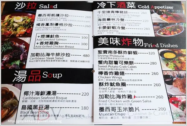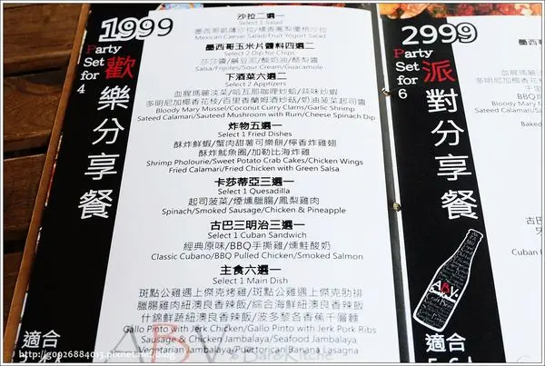 多樣化的餐點,有沙拉、湯品、炸物、下酒菜、古巴三明治...等等