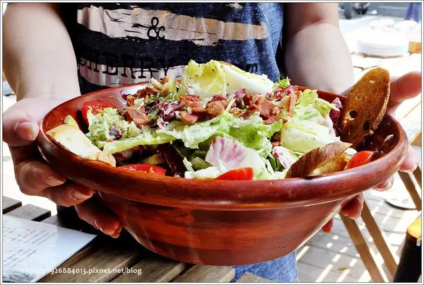 超級豐富的木盆沙拉,我們三個人分食綽綽有餘