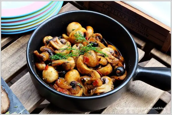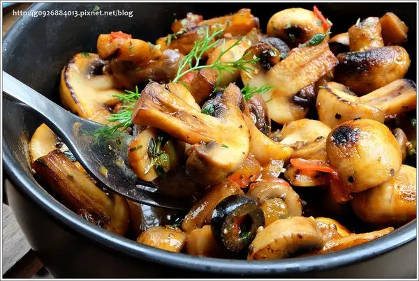 用百里香以及蘭姆酒下去調味拌抄的蘑菇,好吃到嫑嫑的