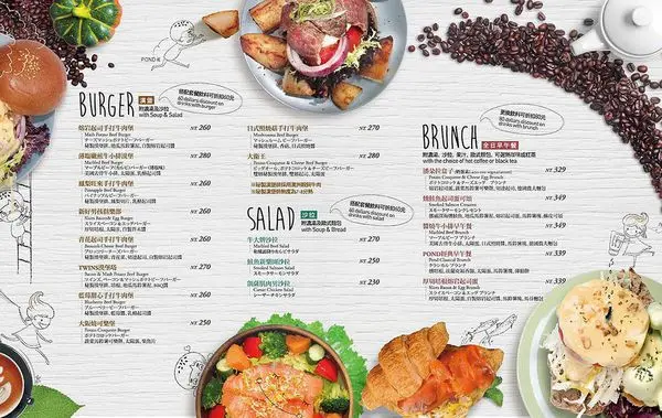 「Pond Burger Cafe」的早午餐、漢堡以及沙拉,都是以套餐方式呈現