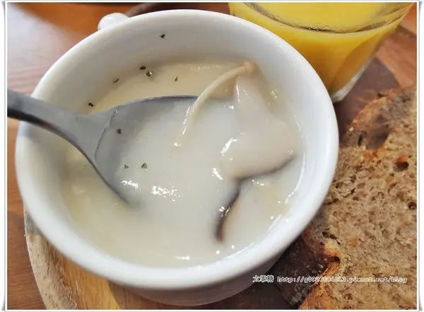 濃湯的濃稠度適中,加在裏頭的菇類配料蠻多的