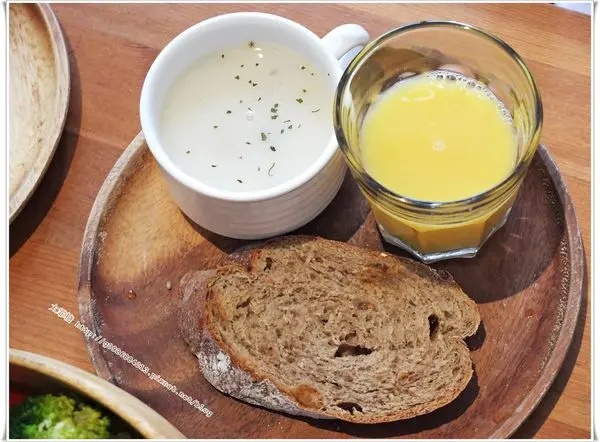 早午餐有附柳橙汁,還可另選熱咖啡OR紅茶