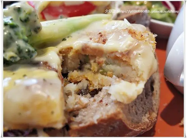 底下是德國麵包,亮點當然是那顆熔岩起司蛋