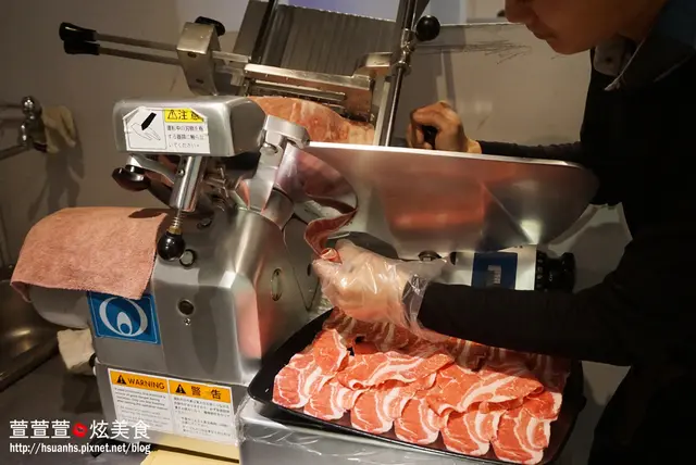 店員會現點現切片,用機器將肥美的肉塊切成曼妙的肉片