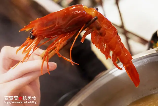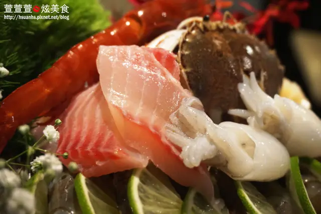 裏頭有胭脂蝦、螃蟹、白蝦、大干貝、魚片、 一口花枝、蛤蜊