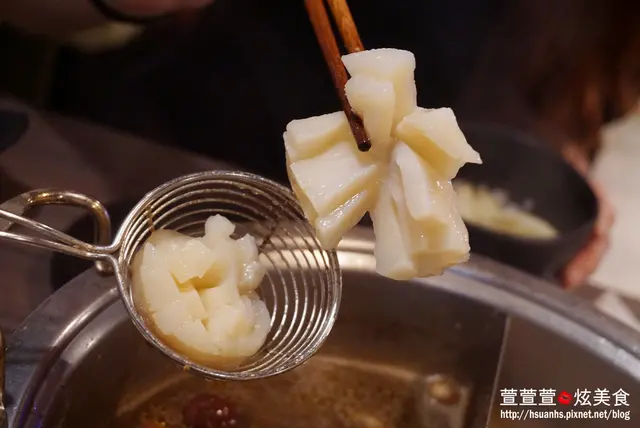 把花枝漿涮到蒙古鍋裡會很有趣,撈起來時會整個沾滿白胡椒,所以也不用再沾其他醬料,有像炸花枝丸的感覺~~