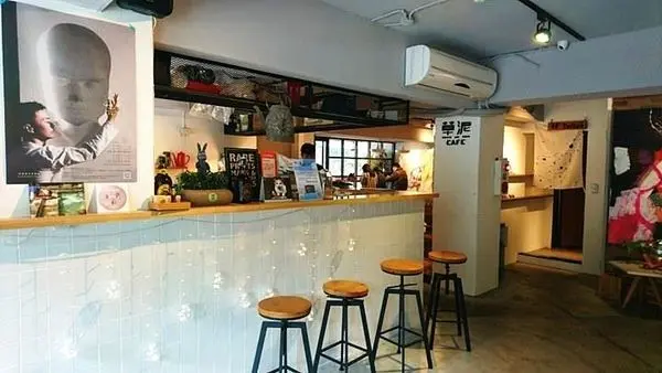 入口處的木質摺疊小窗好美,搭配繽紛高腳座椅和腳踏車,為有著靜謐氣息的草泥咖啡增添了一番生氣呀。這一扇如此美麗的風景,也讓許多人爭相在此拍照留影喔。