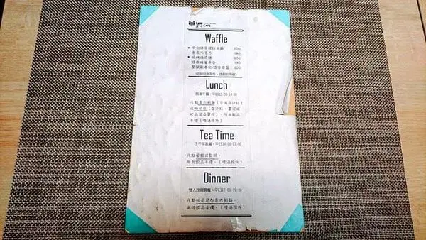 背面則是商業午餐、下午茶套餐、鬆餅和晚間套餐的內容喔。套餐是點主餐,再加點飲品可享半價優惠。