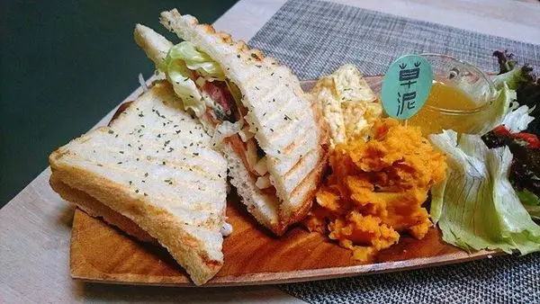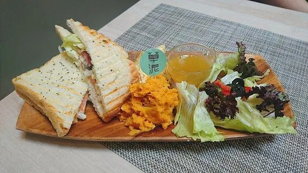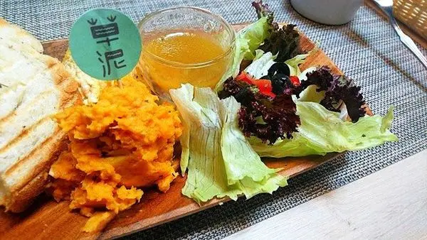 當天是假日,幾乎是滿座的情形下,感受到草泥店內充滿生氣,和我想像中的沉靜有點不同。但整個環境氣氛的營造讓人很是舒適,可以放鬆地聊天想事情,沒有壓力的嚐著簡單的美食,啜飲一杯咖啡,慢慢享受有陽光的溫暖室內,靜靜地坐著。