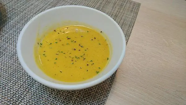 每日例湯。當日不知道是因為店內客人太多,還是人手不足,上餐的順序挺奇怪的,沙拉、義大利麵和飲品都來了,等到麵吃完了才上湯品,還是我們和店員提醒的,可能因為當天客人組數過多,忘記了吧。