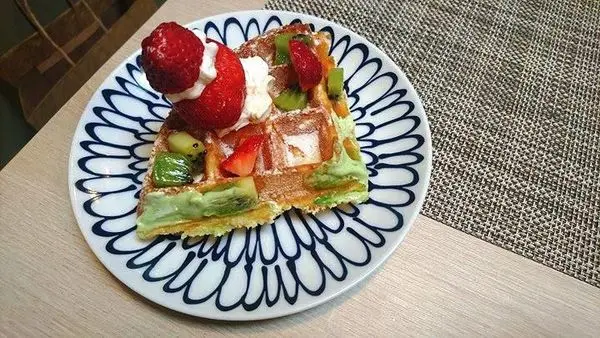 好像小雪人一般的草莓可是來自大湖的優良草莓喔。鬆餅口感鬆軟,鮮奶油的甜膩中和水果酸度,搭配鬆餅一起入口,不是多特別的口味,但就是很自然很好吃,可能造型太可愛了吧!總之整體氛圍對了,胃就開了呀!