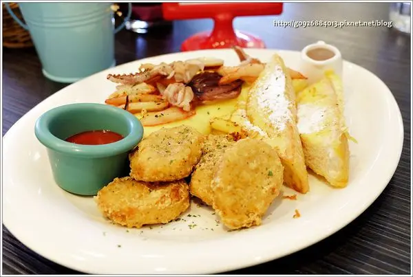 炸的非常香酥的雞塊,吃起來不會油膩,也不會很乾,可搭配蕃茄醬