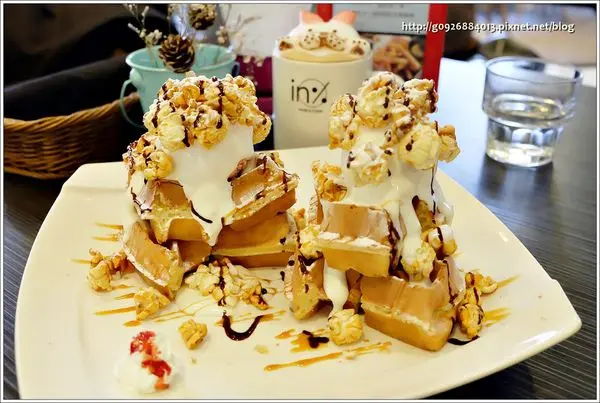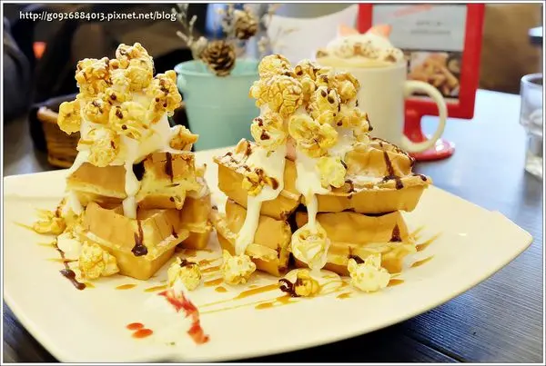 鬆餅除了淋上獨家神秘醬之外,還有兩球明治冰淇淋
