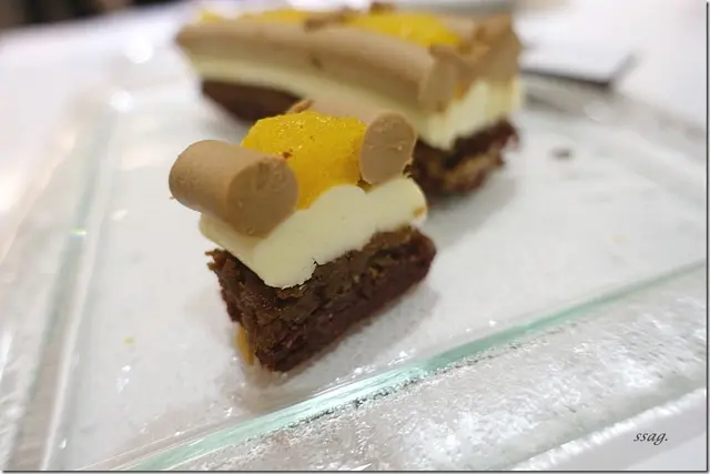 以杏仁海綿蛋糕、巧克力甘納許、