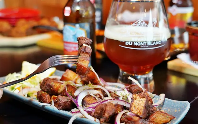 酥炸豬五花的風味,鹹酥香氣十足,而且炸到油脂都逼出來了,吃起來不會顯膩口,反而脆感十足,當然搭配精釀啤酒,就更讚啦!超舒爽。