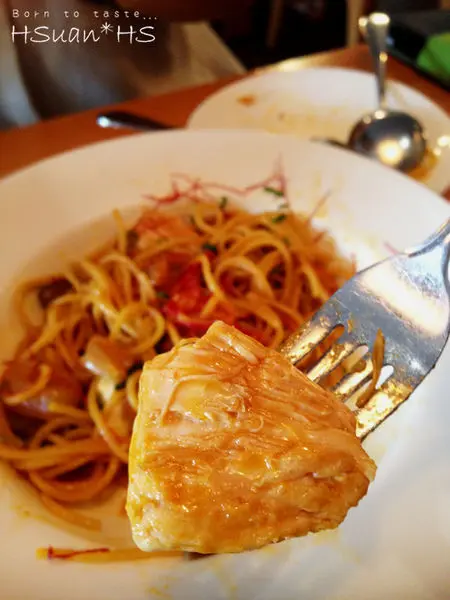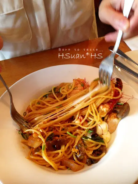 麵條也比常見義大利麵粗一點點,裹上醬汁咬起來非常飽口