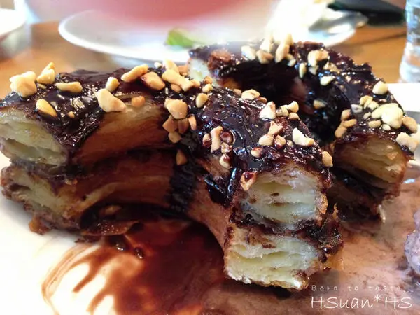 一層一層的層次在口中和巧克力醬交融的無比完美