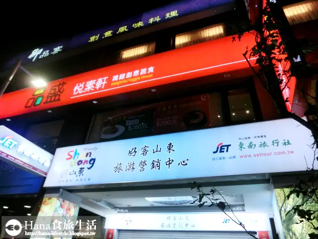 ▲位於南京東路二段與建國北路口附近的品盛悅素軒有著紅色醒目的招牌,