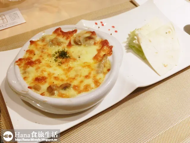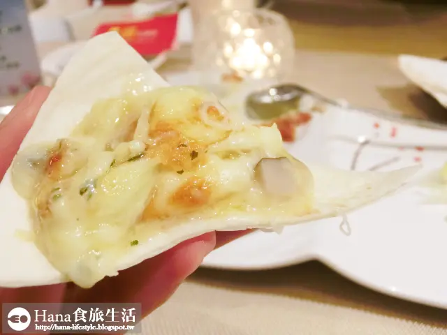 ▲可以搭配旁邊的薄餅一起吃,香濃的起司多汁的洋菇一同入口很飽嘴!
