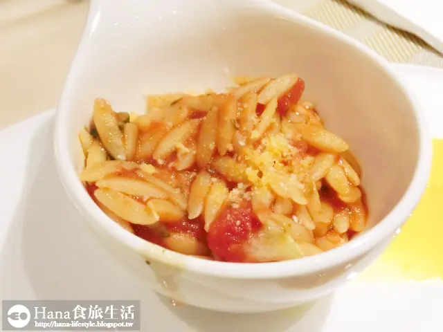 ▲旁邊的番茄米麵可以解解膩,還有灑上些許的起司,入口嘴裡會散發迷迭香氣