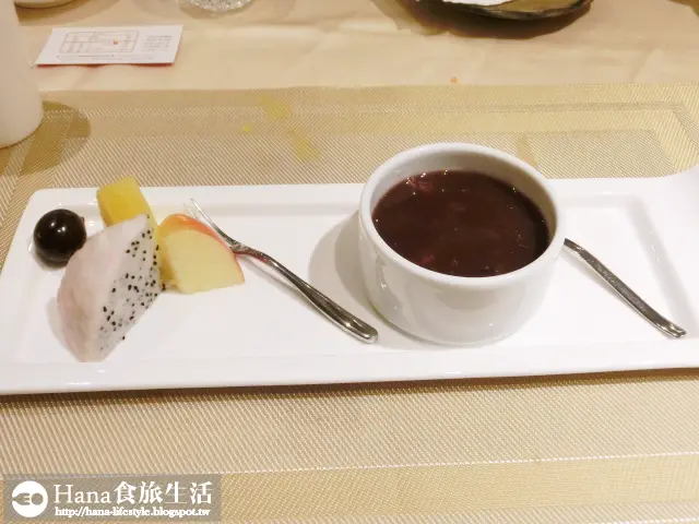 ▲主廚特製甜點,是水果和紫米八寶粥的組合