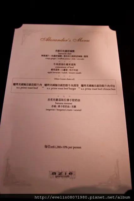 主菜可依客人喜好,選擇「爐烤美國極佳級肋眼牛肉」、