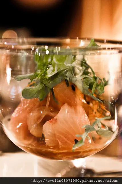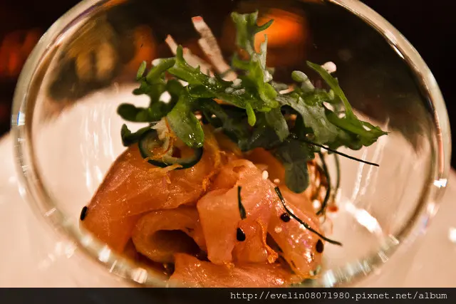 裝在透明杯中感覺好清涼,粉色魚肉搭上青綠生菜光看就感覺好美味啊~。