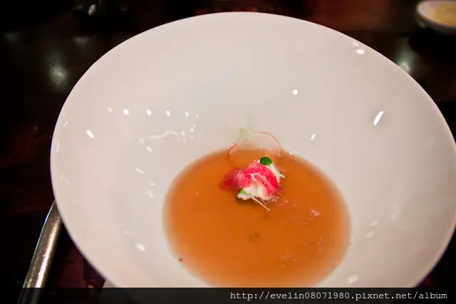 湯品 -「牛肉清湯佐蘋果慕斯」,