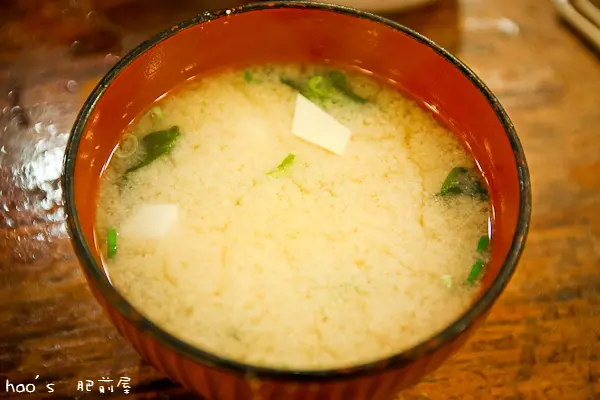 點好餐後,先送上味噌湯,口味尚可,食料為海帶芽及豆腐,份量不多。