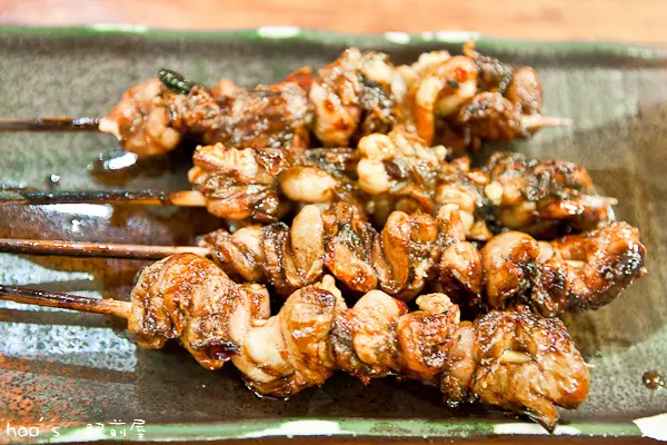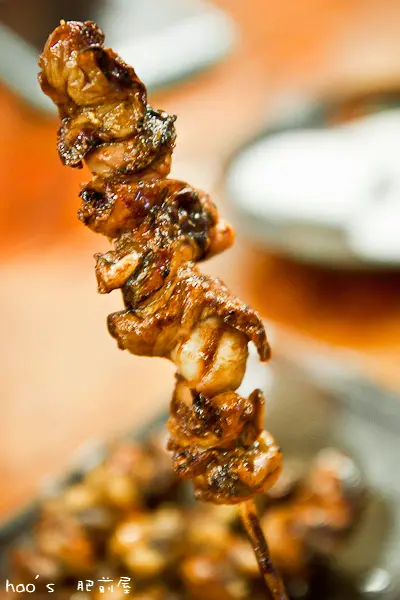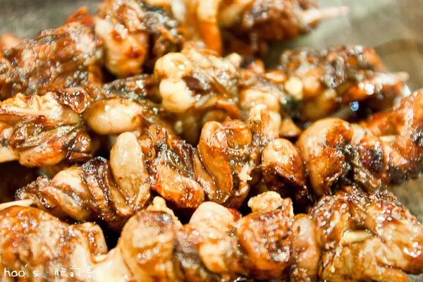 新鮮鰻肝刷上醬汁燒烤,微焦油亮,散發陣陣魚香,引人食欲。