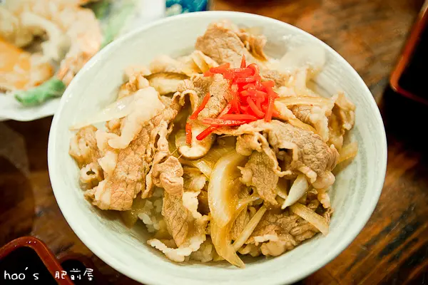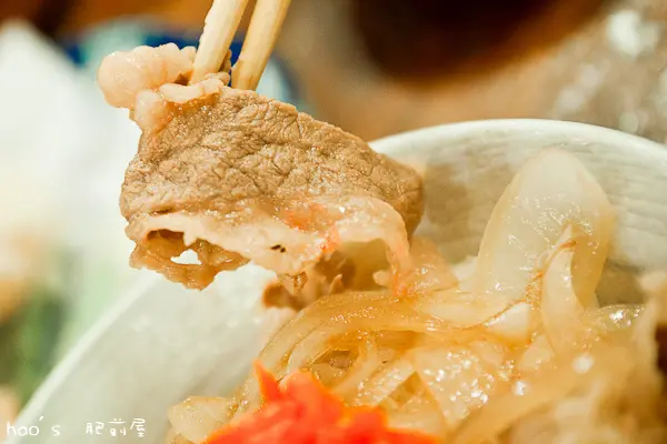 醬煮牛肉、大量洋蔥、少許香菇切片,搭上紅薑切絲,